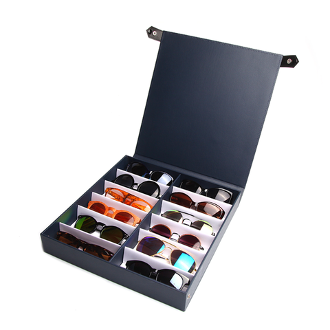 Op Maat Gemaakt Logo Zwart Polyester Vlek 12 Slots Brillen Etalage Opbergbakjes