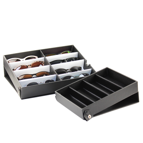 Pu Stain Zwart Wit 8 Slots Eyewear Display Met Knop Zonnebril Lade Optische Show Case